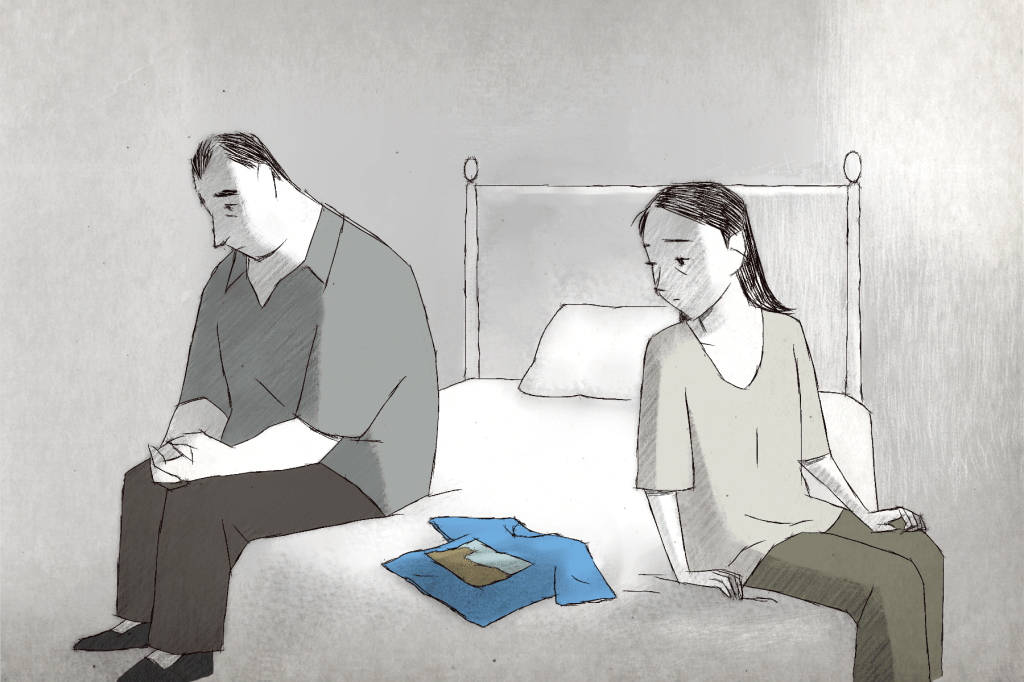 Despite an apparent austere and simple style, the visual imagery that impregnates the screen helps both McCormack and Govier to explore loss and love in an effective and subtle manner. On the one hand with a more symbolic approach (i.e. the shadows in the background, or the dead flowers); and on the other, in a more natural and realistic way (e.g. the blue t-shirt, the stain on the wall or the parents sitting at opposite ends of the table -indicating the growing distance between them in a way that reminded me of Citizen Kane-).